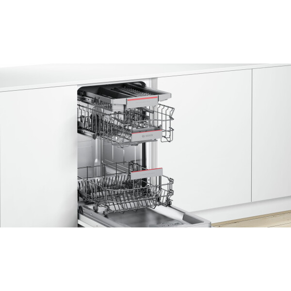 Bosch SPV 66MX30R — это узкая встраиваемая посудомоечная машина cбережет драгоценное время и поместится даже на небольшой кухне. Пять уровней распределения воды обеспечат превосходный результат мытья. Вам больше не потребуется накапливать грязную посуду, благодаря функции половинной загрузки. Посуда разных форм и размеров легко размещается благодаря системе складных элементов в коробах VarioFlex Plus. Модель обладает очень тихой работой на уровне 46 дБ, что сравнимо с обычным разговором.