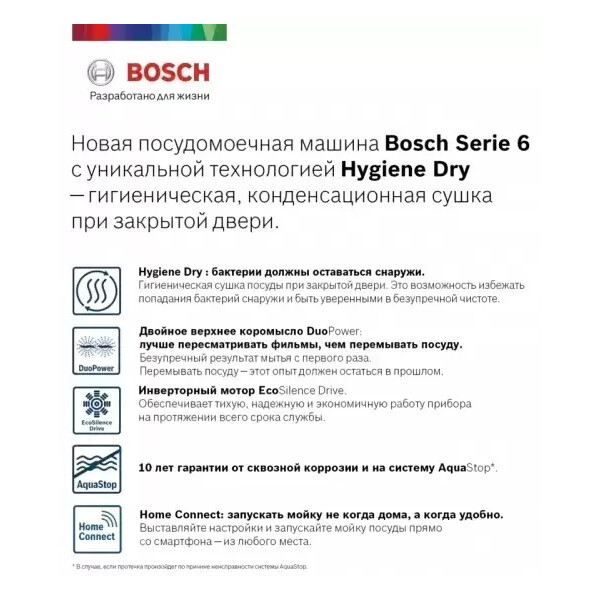 Поддерживать чистоту в доме бывает сложно. А сохранить в нём тишину порой, кажется, просто невозможно. Посудомоечная машина с двигателем EcoSilence Drive обеспечит эффективную мойку наряду с низким уровнем шума. Благодаря отсутствию трения он надежнее и долговечнее обычных моторов и имеет гарантию на 10 лет.