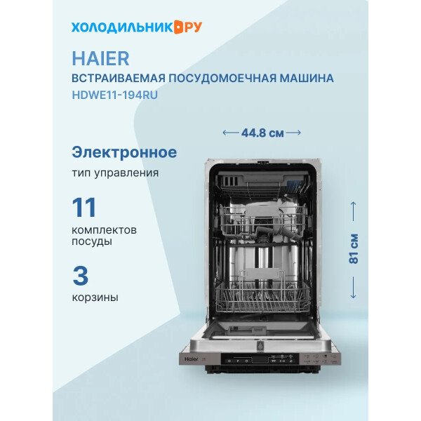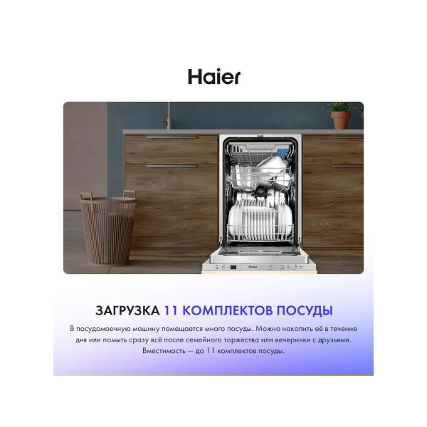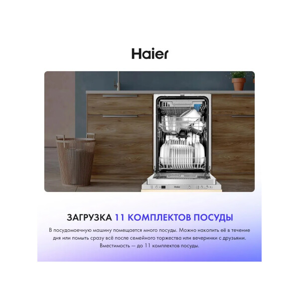 Встраиваемая посудомоечная машина шириной 45 см HDWE11-194RU рассчитана на загрузку до 11 стандартных комплектов посуды. В нижней и средней корзине есть складные держатели, а среднюю корзину можно также отрегулировать по высоте, чтобы максимально удобно загрузить всю посуду. Верхнюю корзину-поднос для столовых приборов можно легко вынуть из машины для удобной загрузки и разгрузки. Для удобного и комфортного использования машина оснащена подсветкой внутренней камеры, опцией индикации работы луч на полу и сенсорной панелью управления с цифровым дисплеем. 8 программ мойки позволят вам в любой ситуации выбрать подходящий режим мойки.
