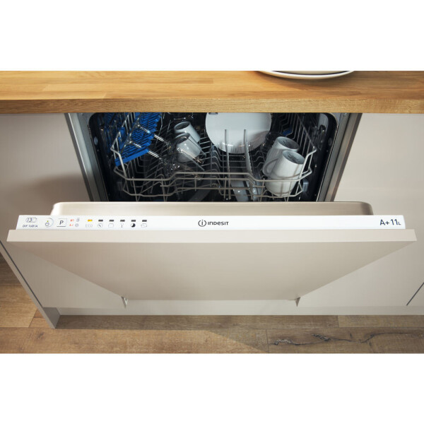 Встраиваемая посудомоечная машина Indesit DIF 16B1 A EU имеет ширину машины всего 59.8 см см дает возможность установить ее на небольшой кухне. При этом загрузка машины позволяет загрузить до 13 комплектов посуды. Верхняя полочка регулируется по высоте и позволяет компактно разместить посуду. За один цикл обычной мойки расходуется 12 литров воды, что достаточно экономно.