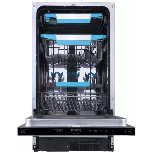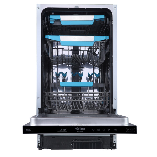 Встраиваемая посудомоечная машина Korting KDI 45980 поможет вам облегчить уход за посудой. Данная модель существенно сэкономит ваше время и возьмет на себя ее очистку от загрязнений. Шириной всего 45 сантиметров отлично впишется в небольшую по площади кухню и сможет за один раз отмыть десять комплектов посуды. Тарелки и кружки раскладываются по трём корзинам, высоту которых можно регулировать.
