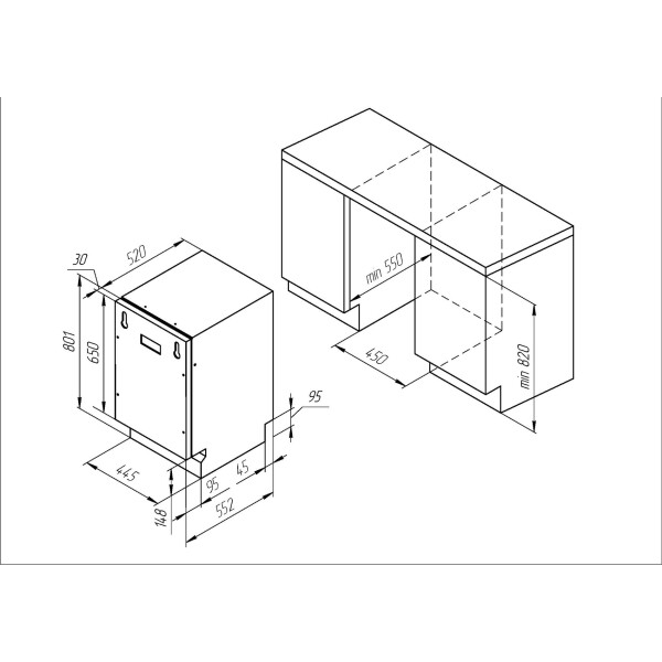 | Ширина встраивания | 45