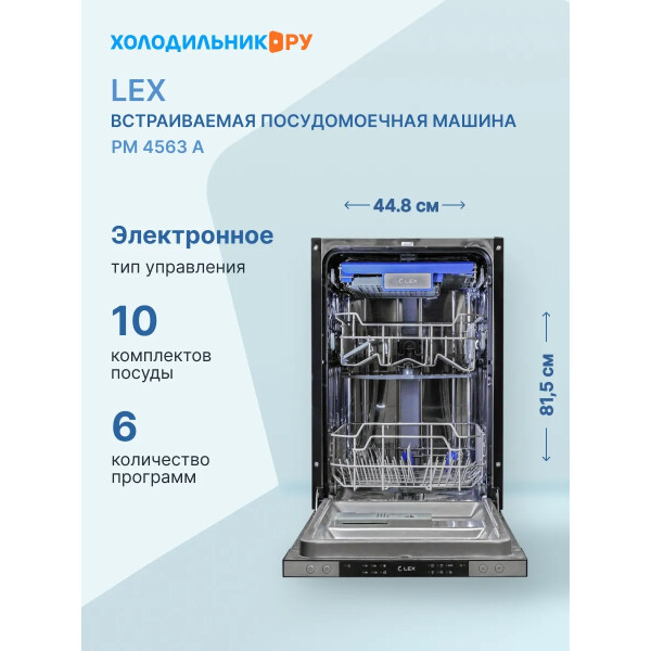 Встраиваемая посудомоечная машина LEX PM 4563 A работает в шести программах мойки посуды, что обеспечивает качество чистоты. Помимо стандартной и экспресс-программы предусмотрено мытье хрупких предметов, а также половинная загрузка посудомоечной машины, при которой экономится расход воды и электроэнергии. Еще одним достоинством в плане экономии электричества является возможность подключить посудомойку к горячему водоснабжению. Защита от протечек позволит избежать неприятности в виде потопа, заблокировав поступление воды в случае поломки.