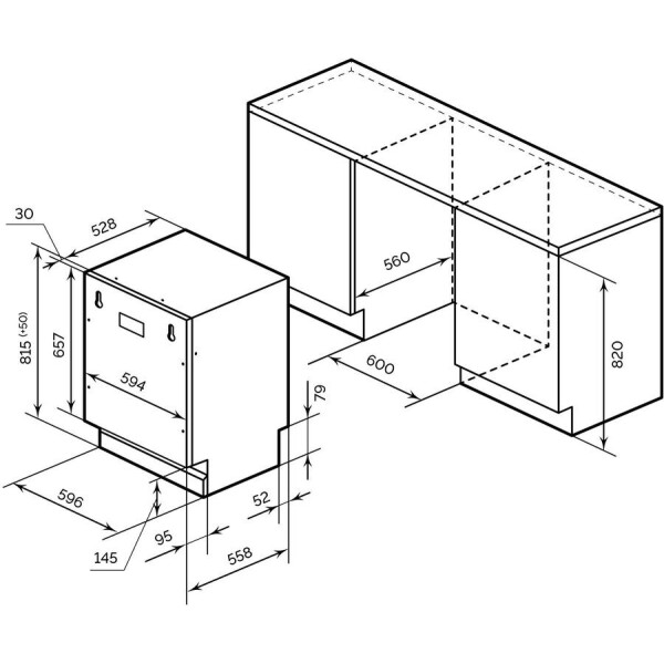 Устройство имеет ширину 60 см и предназначено для встройки в стандартную кухонную тумбу.