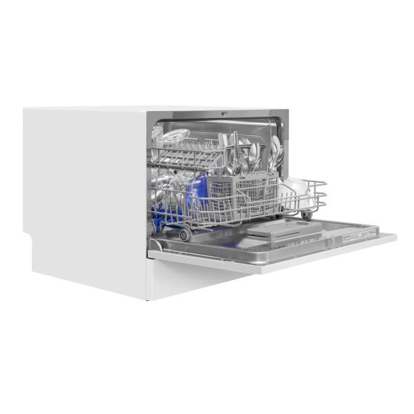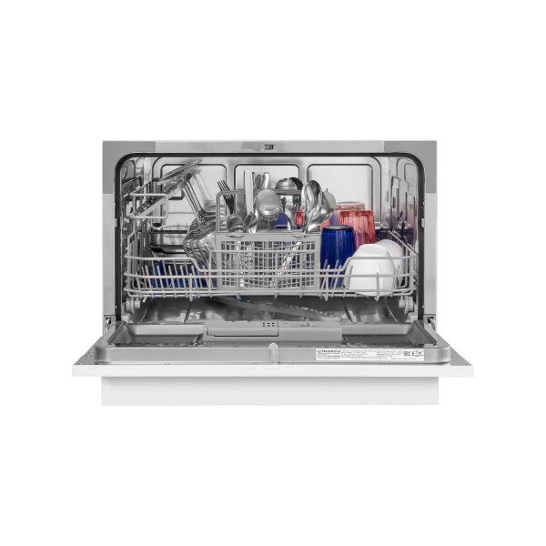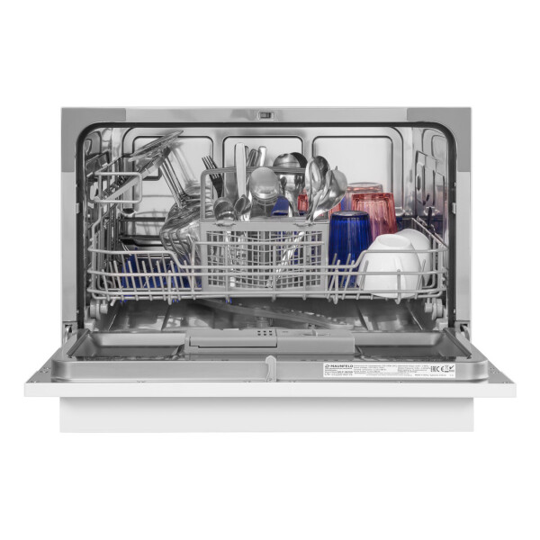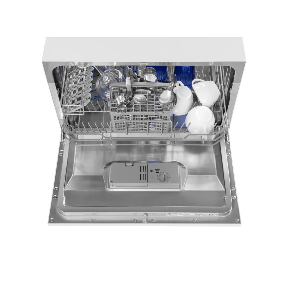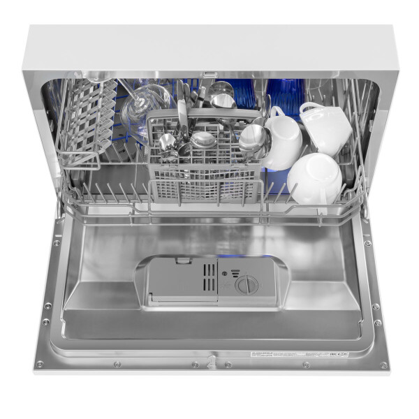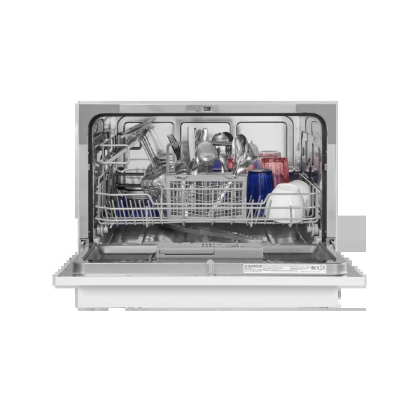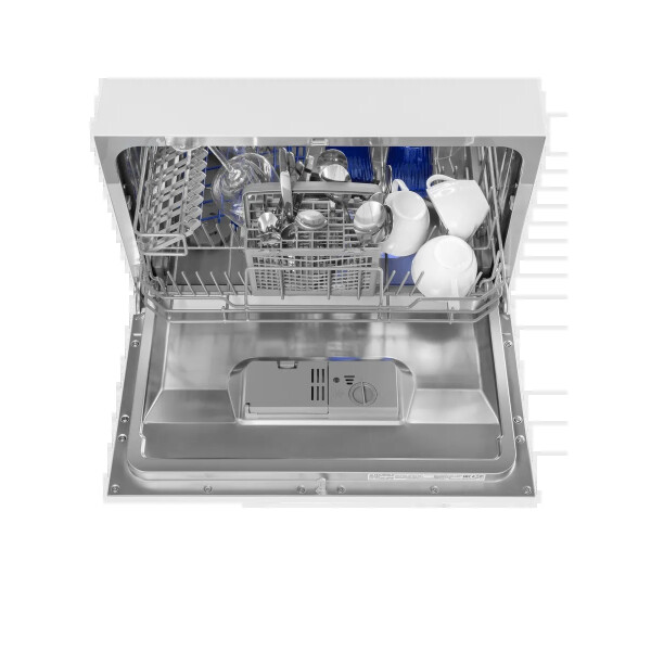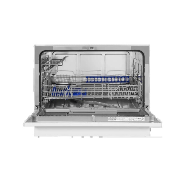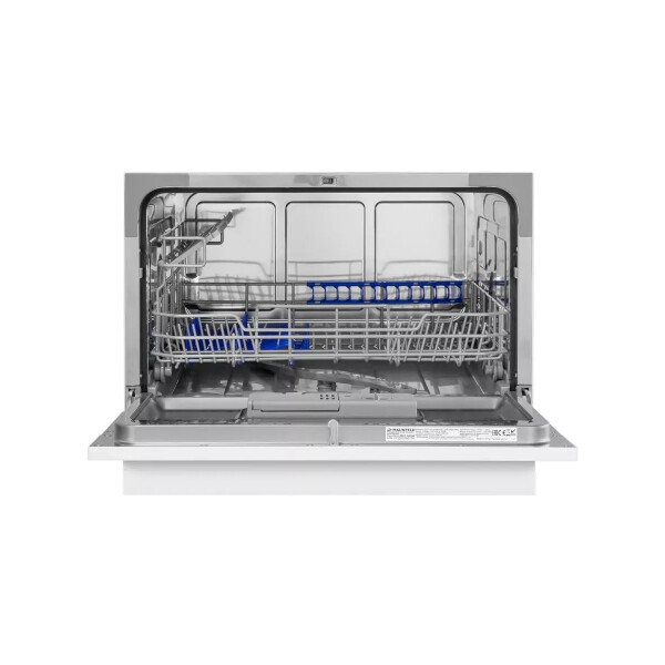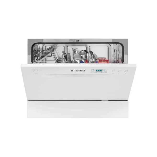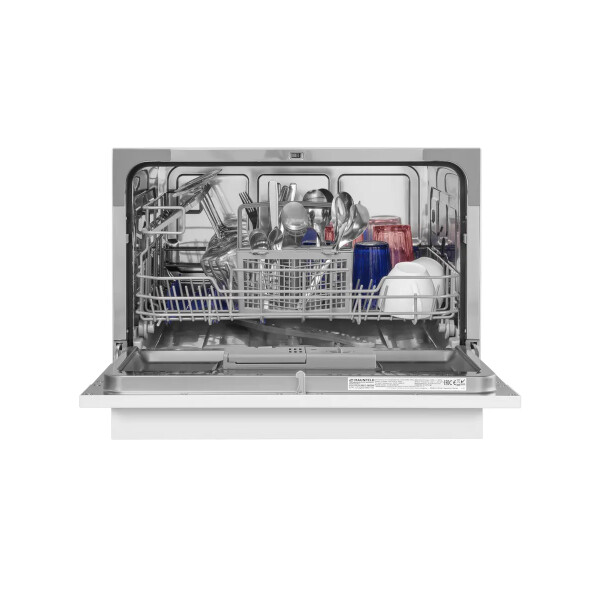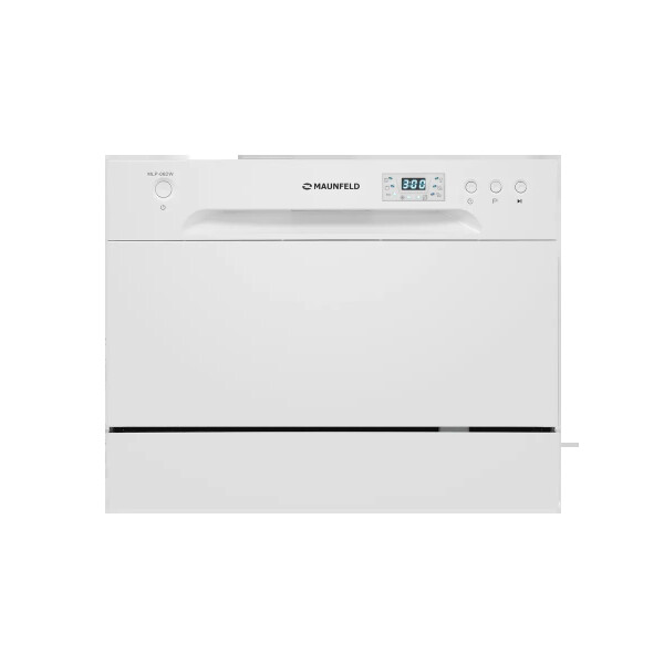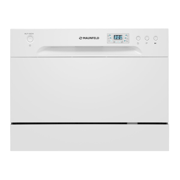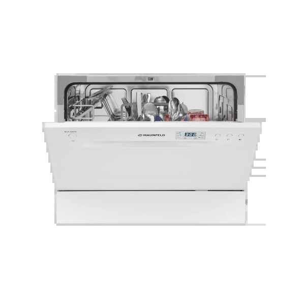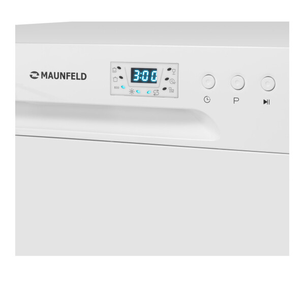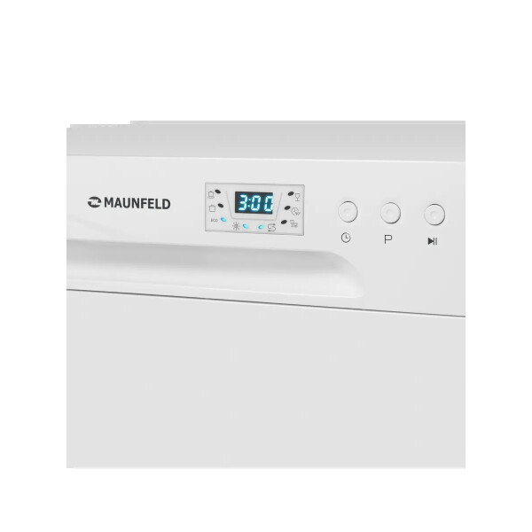 Электронное управление с дисплеем расположено в торце загрузочной дверцы. Функционал данной модели позволяет вам выбрать программу мойки, включить половинную загрузку, выставить время отсрочки старта (1-24 часов).