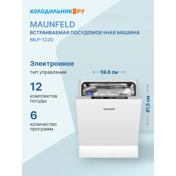 Встраиваемая посудомоечная машина MAUNFELD MLP-122D позволяет одновременно загружать до 12 комплектов столовых принадлежностей, расходуя всего 11 л воды. Это отличное решение для большой и гостеприимной семьи, в которой любят готовить. Прибор имеет 6 алгоритмов работы, поэтому он позволяет создавать идеальные условия для любой посуды, независимо от ее материала или степени загрязненности.