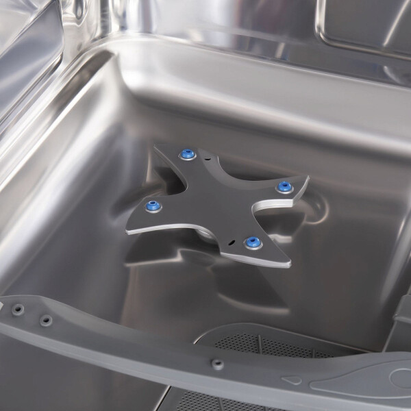 Для эффективного мытья ложек, вилок, ножей и половников есть отдельный лоток Infinity Plus, который при необходимости можно сложить или выдвинуть обратно. Верхний короб для чашек, бокалов, блюдец и соусниц регулируется по высоте. Нижняя корзина предназначена для больших тарелок, кастрюль, сковород, крышек и противней.
