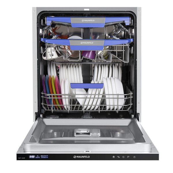 Посудомоечная машина Maunfeld MLP-12IMR компактно встраивается в нишу шириной 60 см, занимая минимум полезного пространства на вашей кухне. Внутрь камеры можно загрузить 14 комплектов тарелок, кружек и столовых приборов, поэтому модель оптимально подойдёт для большой семьи.