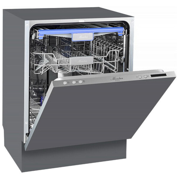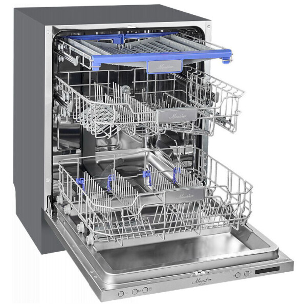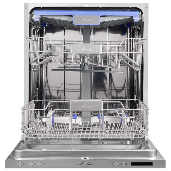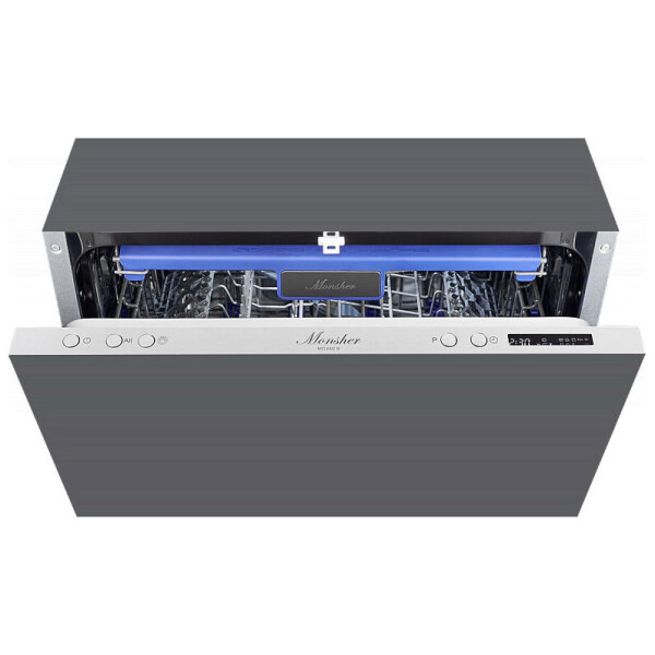 Встраиваемая посудомоечная машина Monsher MD 602 B полностью встраиваемая. Ширина 60 см, 14 комплектов, корзина для столовых приборов, экстра сушка, функция ALT(мойка посуды в одной из 3 корзин на выбор), функция всё в одном, электронное управление, цифровой дисплей, 8 программ (AUTO, Интенсивная, Нормальная, Экономичная, Стекло, 90 мин, Быстрая), регулируемая по высоте верхняя корзина, луч на полу, индикация отсутствия соли и ополаскивателя, индикатор воды, функция самодиагностики, система защиты от протечек Aqua Stop, уровень шума 47 дБ, классы А++/А/А