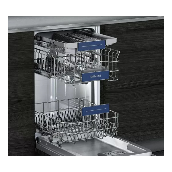 Узкая посудомоечная машина Siemens SR636X03ME шириной 45 см - малошумная и практичная модель для ежедневного использования, которую можно установить в малогабаритной кухне.