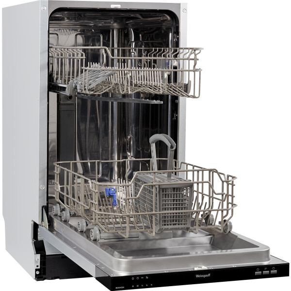 Наиболее доступная по цене посудомоечная машина Weissgauff - она сохранит ваше время для более важных дел, чем мытьё посуды. Три уровня таймера отложенного старта позволят запускать цикл мойки даже если вас сейчас нет дома. А мягкая и приятная LED-индикация белого цвета напомнит, если пришла пора добавить соль и ополаскиватель.