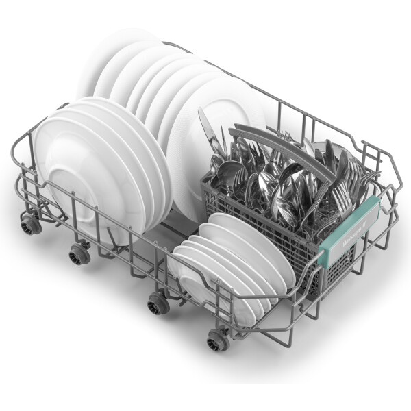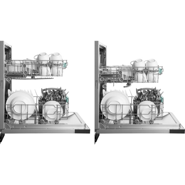 Всего в два нажатия, вы можете изменить положение средней корзины, опустив её ниже или подняв чуть выше, что даст вам возможность разместить в посудомоечной машине даже большие кастрюли, в любое время, до, после или во время загрузки корзины, без необходимости вынимать посуду из уже загруженной корзины.