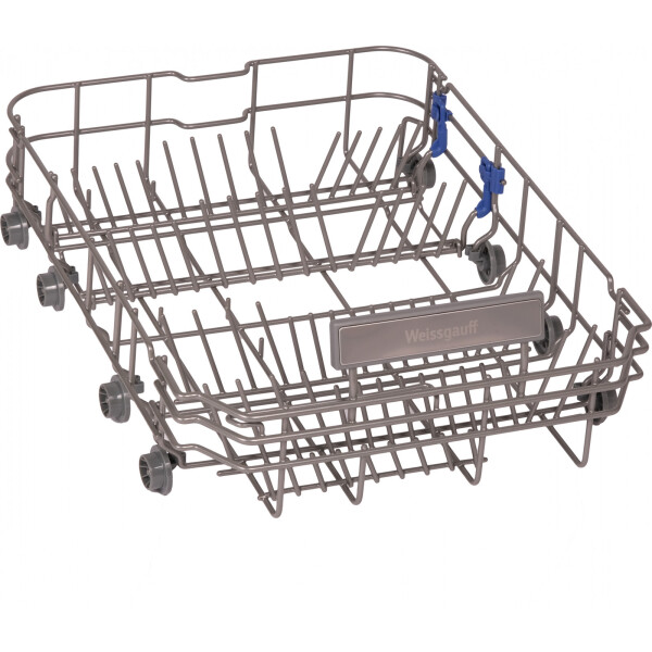 Складные стойки нижней корзины, позволят с удобством использовать её как для размещения дополнительных блюдец и тарелок, так и для более крупной посуды, такой как кастрюли и сковороды.