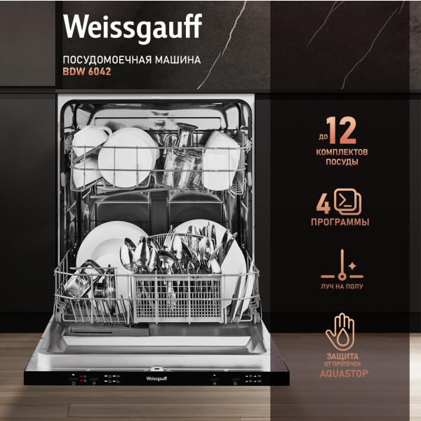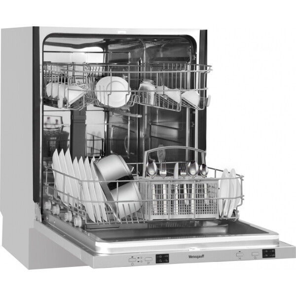 Полноразмерная и вместительная встраиваемая посудомоечная машина Weissgauff, рассчитанная сразу на 12 комплектов посуды, обладает всеми необходимыми опциями для наилучшего результата после каждого рабочего цикла загрузки. Технологичные разбрызгиватели воды обеспечивают наилучшее качество мытья, а современная панель управления в стилистике Hi-Tech и добавит эстетики и красоты в общий дизайн вашей кухни. До 12 комплектов посуды одновременно вы можете расположить в данной посудомоечной машине, что позволяет справиться со всем необходимым объемом работы за один раз