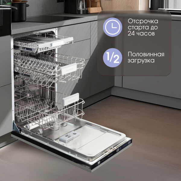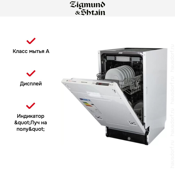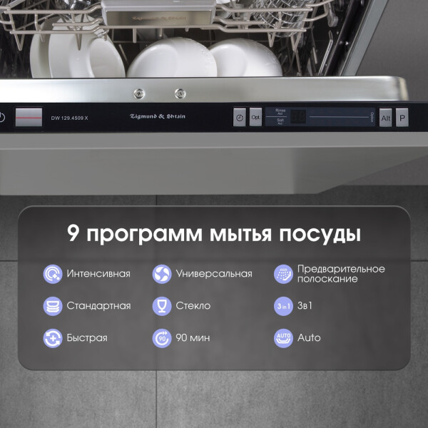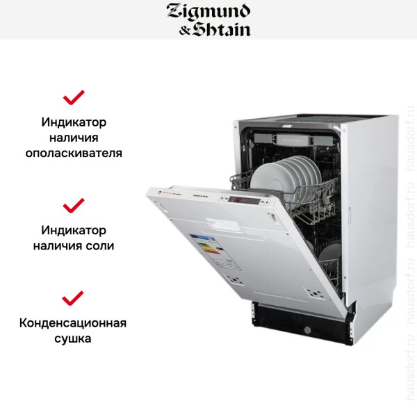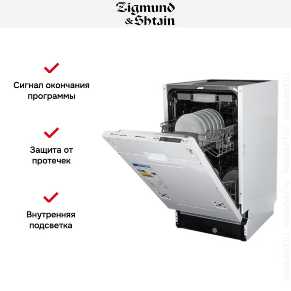 Встраиваемая посудомоечная машина Zigmund & Shtain DW 129.4509 X имеет обширный набор опций, которые можно использовать в любой ситуации. Она может вмещать в себя до 10 комплектов посуды одновременно, при этом моет начисто даже самую грязную посуду. Долговечность представленной модели гарантирована, поскольку рабочие части изготовлены из нержавеющей стали, которая превосходно противостоит возникновению коррозии. Для любого типа мойки в этой машине предусмотрен режим, всего их 9. Экономичная мойка, быстрая мойка, интенсивная мойка - помогут справиться с любыми видами загрязнений. Функции отложенного запуска и возможность использовать щадящее средство 3 в 1 делают эту машину отличным агрегатом с классом энергопотребления класса А++. Встраиваемая посудомоечная машина Zigmund & Shtain DW 129.4509 X станет незаменимым помощником на Вашей кухне.