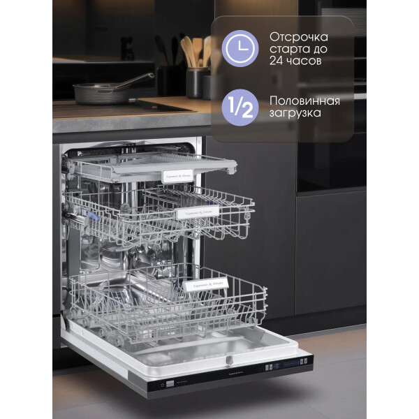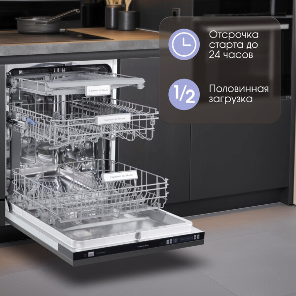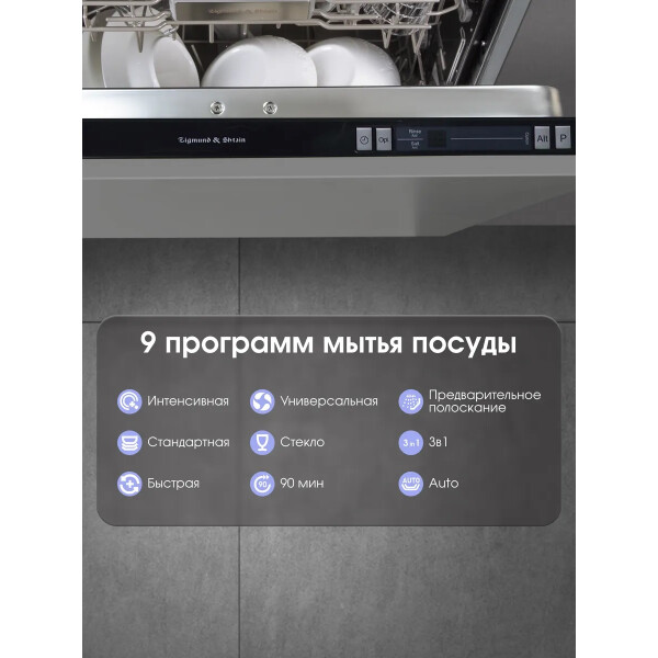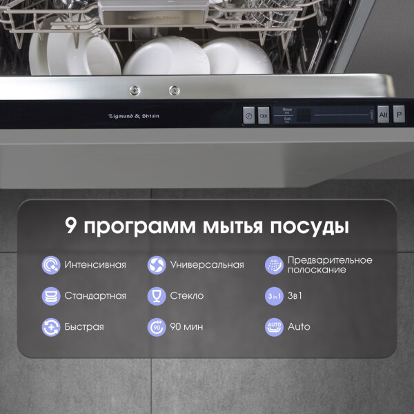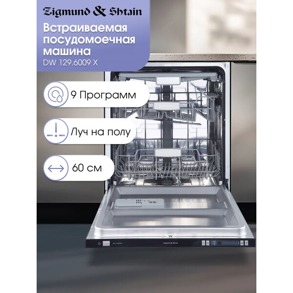 Встраиваемая посудомоечная машина Zigmund & Shtain DW 129.6009 X имеет обширный набор опций, которые можно использовать в любой ситуации. Она может вмещать в себя до 14 комплектов посуды одновременно, при этом моет начисто даже самую грязную посуду. Долговечность представленной модели гарантирована, поскольку рабочие части изготовлены из нержавеющей стали, которая превосходно противостоит возникновению коррозии. Для любого типа мойки в этой машине предусмотрен режим, всего их 9. Экономичная мойка, быстрая мойка, интенсивная мойка - помогут справиться с любыми видами загрязнений. Функции отложенного запуска и возможность использовать щадящее средство 3 в 1 делают эту машину агрегатом с классом энергопотребления класса А++. Встраиваемая посудомоечная машина Zigmund & Shtain DW 129.4509 X станет незаменимым помощником на Вашей кухне.