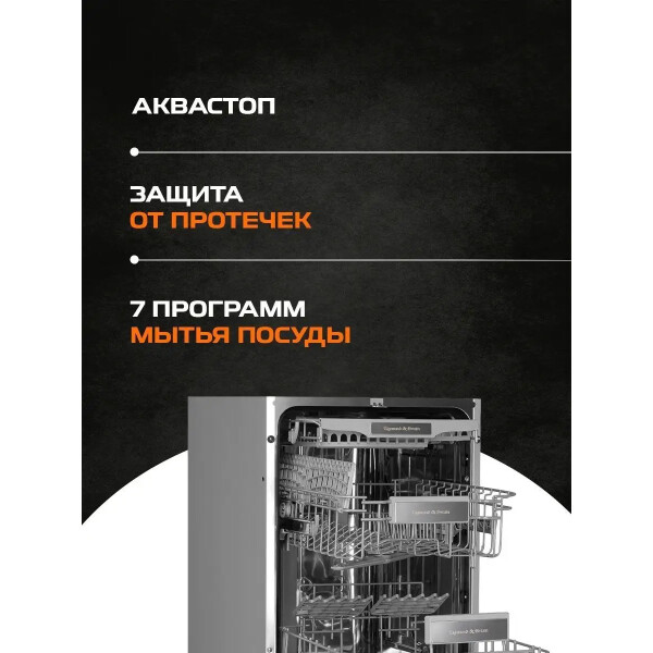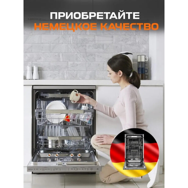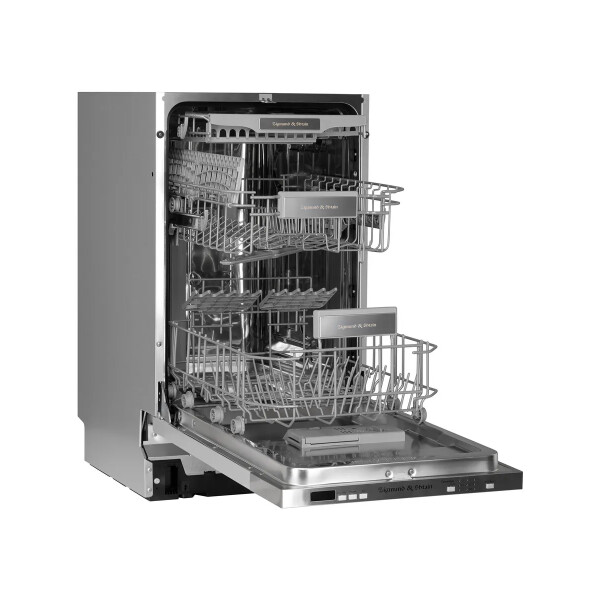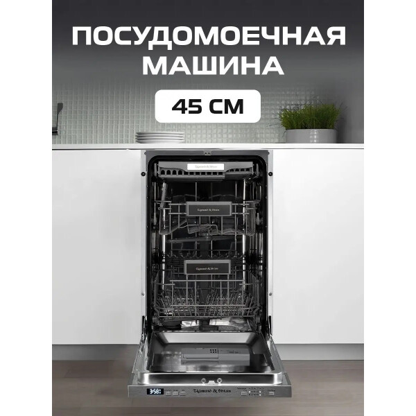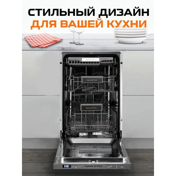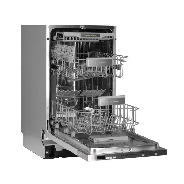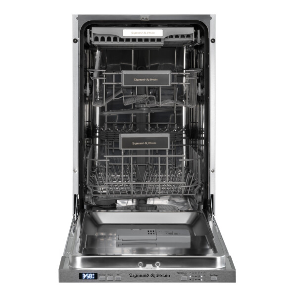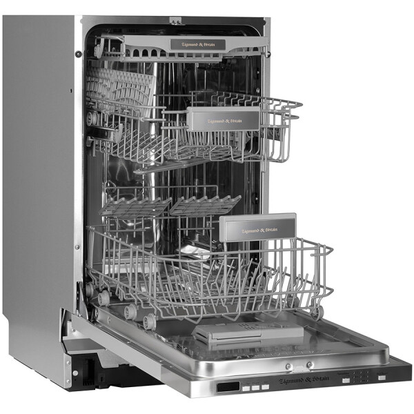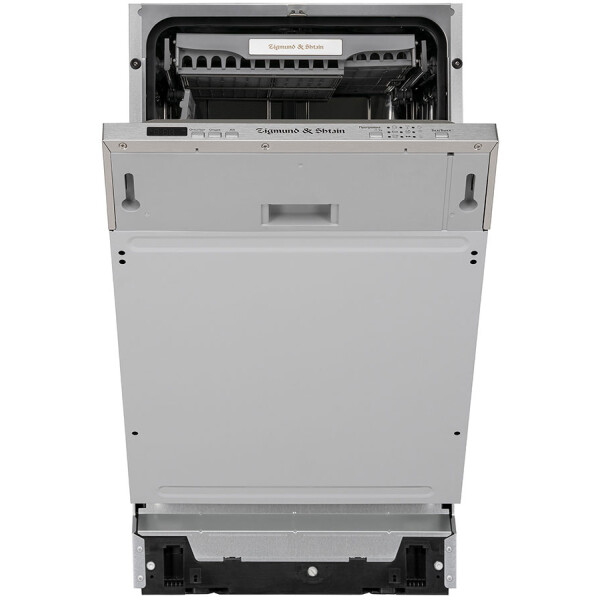 Встраиваемая посудомоечная машина Zigmund & Shtain представлена в элегантном корпусе с покрытием из простой в уходе и устойчивой к влаге нержавеющей стали. Система действует при уровне шума 49 дБ и позволяет использовать чистящие средства 3-в-1.