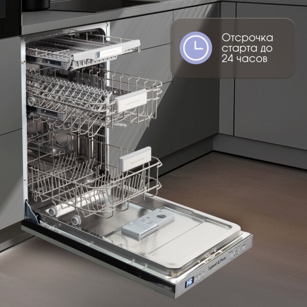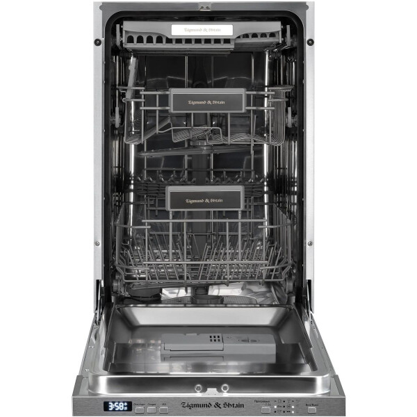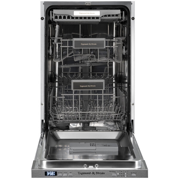 Оборудование Zigmund & Shtain дополнено небольшим дисплеем и функцией отсрочки запуска. Сушка посуды осуществляется по усиленной системе.