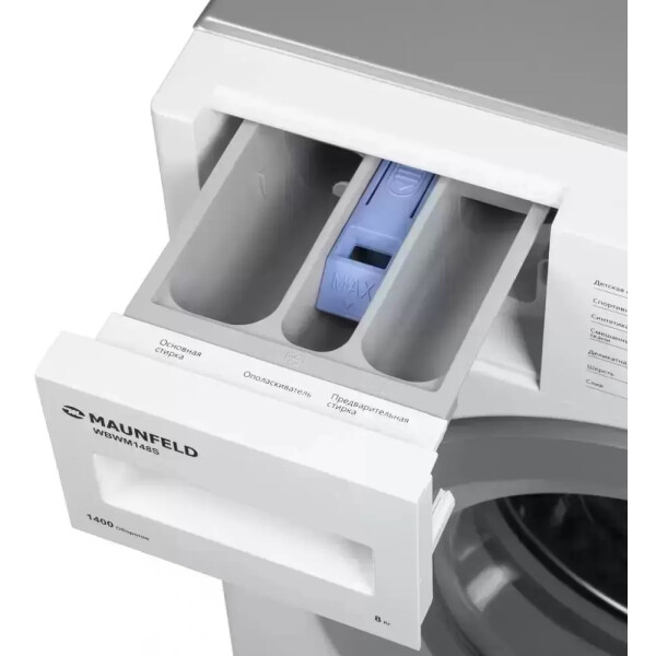 Встраиваемая стиральная машина Maunfeld MBWM148S с фронтальной загрузкой характеризуется встраиваемая типом установки. Барабан вмещает до 8 кг сухого белья. Для качественного ухода за одеждой из тканей различного типа предусмотрено 16 программ. стандартный мотор отличается низким уровнем шума и позволяет продлить срок службы прибора. Современный стиль. Высокий класс энергоэффективности A+++ служит экономичному потреблению электроэнергии.