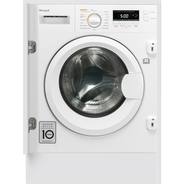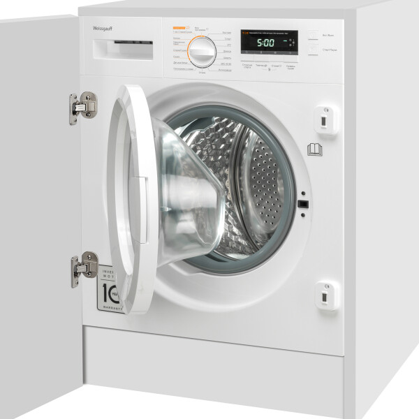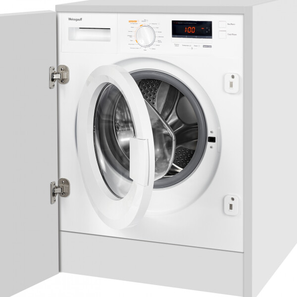 Стиральная машина Weissgauff является полностью встраиваемой, что позволит вам целиком скрыть её, навесив на фронтальную сторону фасад кухни. При этом, петли для крепления уже идут в комплекте вместе с моделью, и их не требуется докупать дополнительно.