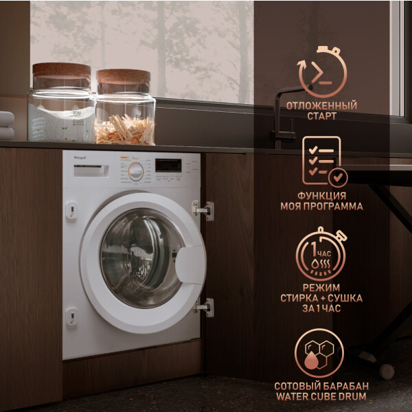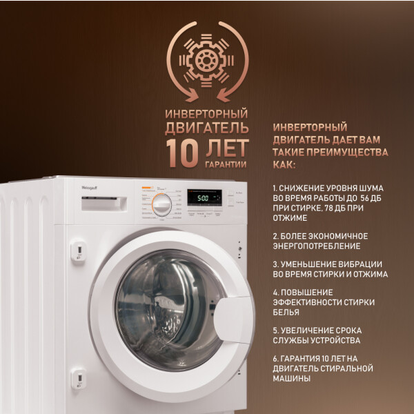 Встраиваемая стиральная машина, имеющая функцию сушки белья до 6 килограммов, имеющая 16 программ и возможность создавать свои собственные режимы - это наиболее совершенное решение в коллекции моделей Weissgauff.