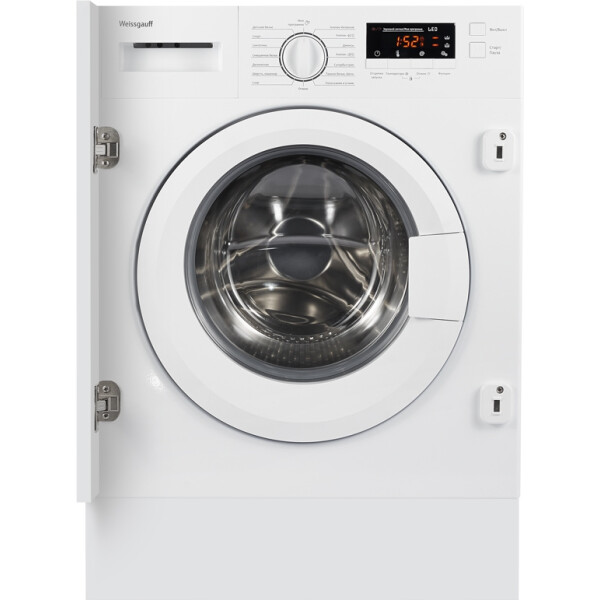 Стиральная машина Weissgauff является полностью встраиваемой, что позволит вам целиком скрыть её, навесив на фронтальную сторону фасад кухни. При этом, петли для крепления уже идут в комплекте вместе с моделью, и их не требуется докупать дополнительно.