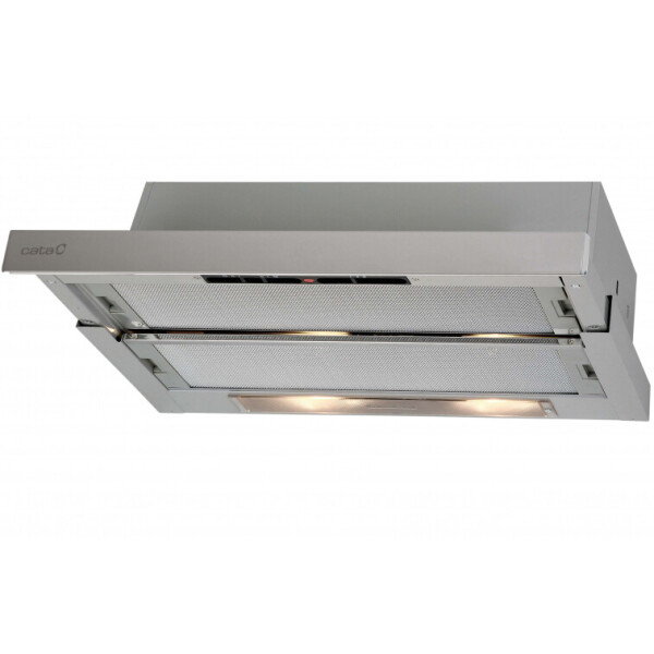 Встраиваемая модель Cata TF-5250 X /A обладает достаточно высокой для небольших кухонь производительностью, которая составляет 600 м/час. Вытяжка укомплектована двумя тангенциальными моторами, которые обеспечивают стабильную работу модели, снижают нагрузку на её внутренние детали, а также значительно сокращают уровень шума (не выше 46 Дб). Эффективно выполнять работу воздухоочиститель может благодаря наличию металлических жироулавливающих фильтров. Особая многослойная конструкция и асимметричное расположение ячеек внутри фильтров позволяют поглощать и удерживать жировые частицы. Это надёжно предохраняет мебель и посуду в кухне от жирового налёта.