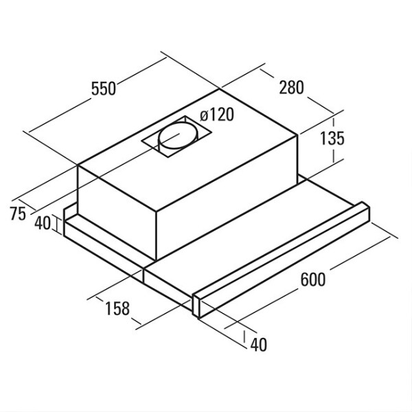 Максимальная производительность вытяжки составляет 600 м/ч. Вытяжное устройство оснащено двумя тангенциальными моторами, что обеспечивает его надёжную и качественную работу, а также значительно снижает уровень шума на первой скорости его уровень не превышает 44 Дб.