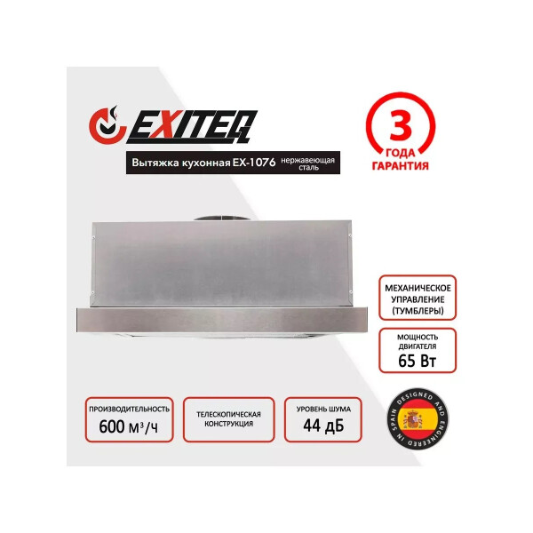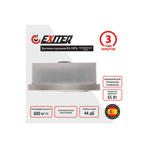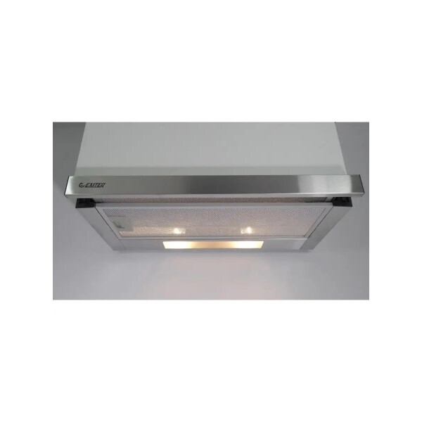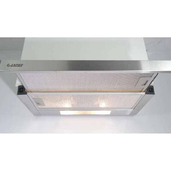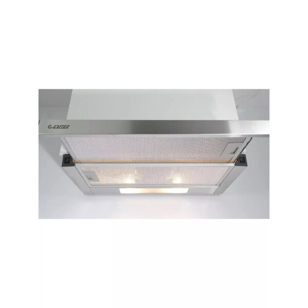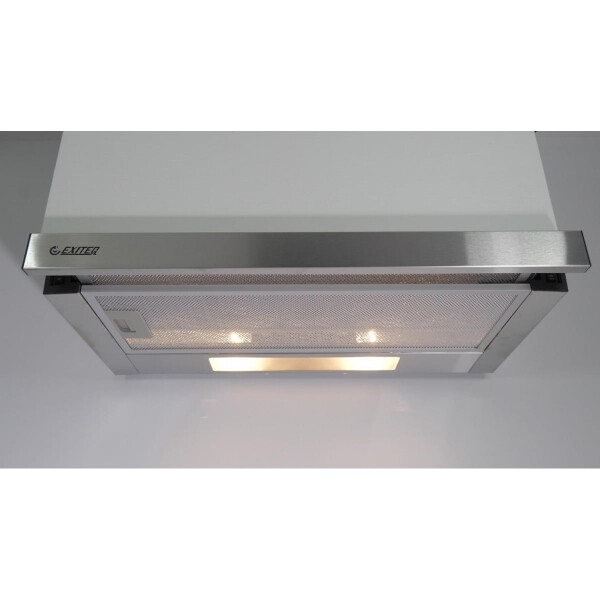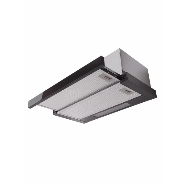 Вытяжка кухонная встраиваемая телескопическая. Цвет - серый. Количество скоростей: 3. Управление механическое (клавиши). Освещение: лампы накаливания 2*40Вт. Уровень шума 30-50dB. Присоединительный диаметр 150 мм. Алюминиевый жироулавливающий фильтр 2 шт. Работа в режиме рециркуляции при наличии угольного фильтра (поставляется дополнительно).