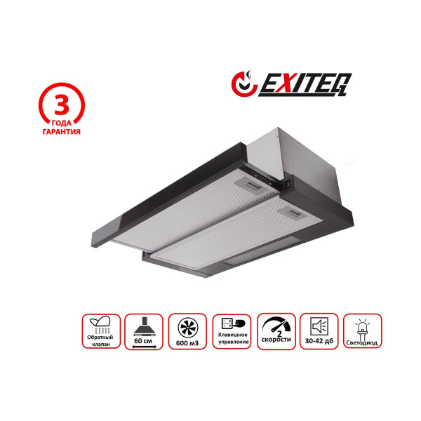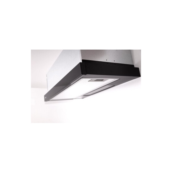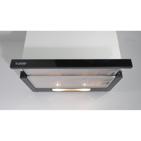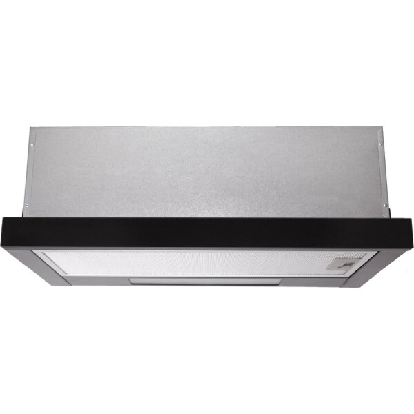 Вытяжка кухонная встраиваемая телескопическая. Цвет - черный. Количество скоростей: 3. Управление механическое (клавиши). Освещение: лампы накаливания 2*40Вт. Уровень шума 30-50dB. Присоединительный диаметр 150 мм. Алюминиевый жироулавливающий фильтр 2 шт. Работа в режиме рециркуляции при наличии угольного фильтра (поставляется дополнительно).