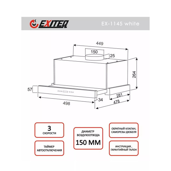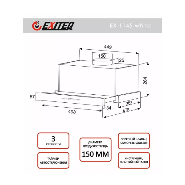 | Диаметр патрубка воздуховода | 150