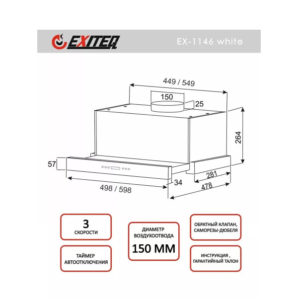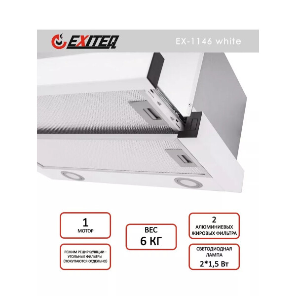 Вытяжка для кухни EX-1146 благодаря своим положительным характеристикам, прослужит вам долгий период времени и никогда вас не подведет. Фильтр отлично улавливает жир, он долговечен, осуществлять его замену вам придется нескоро, несмотря на активную его эксплуатацию. А наличие дистанционного управления вас только порадует.