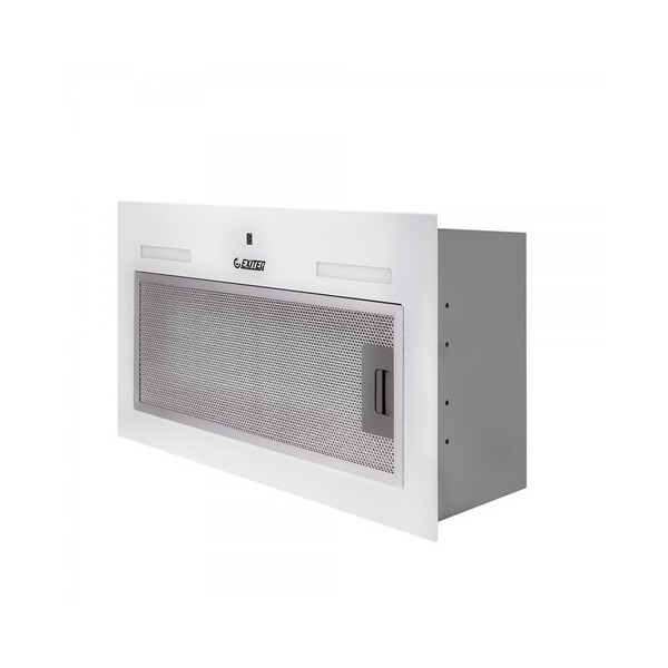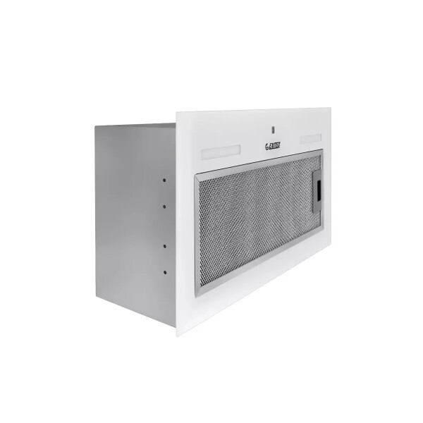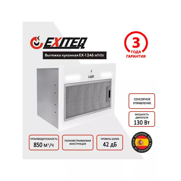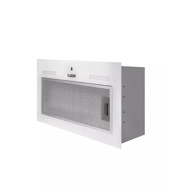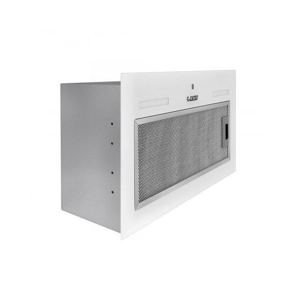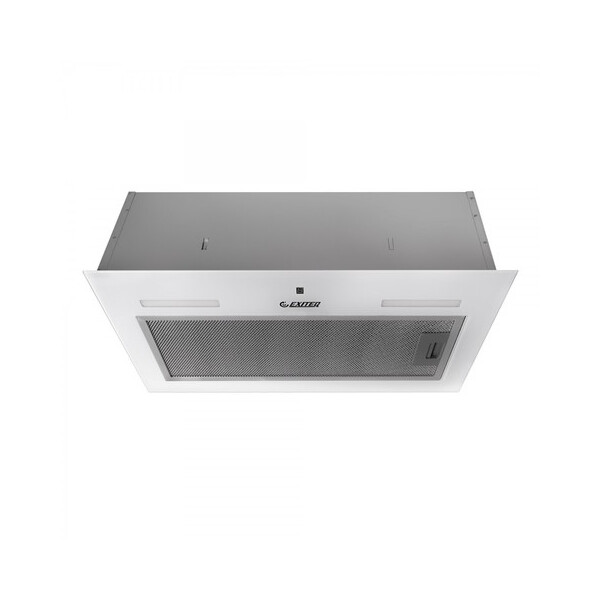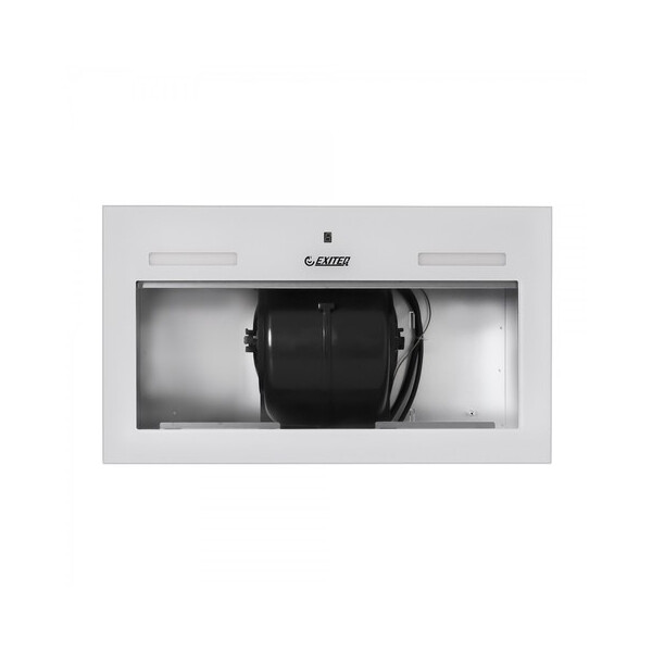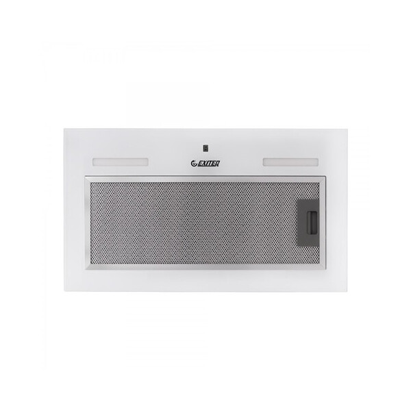 Встраиваемая вытяжка Exiteq EX-1246 декорирована белым стеклом с фацетом.