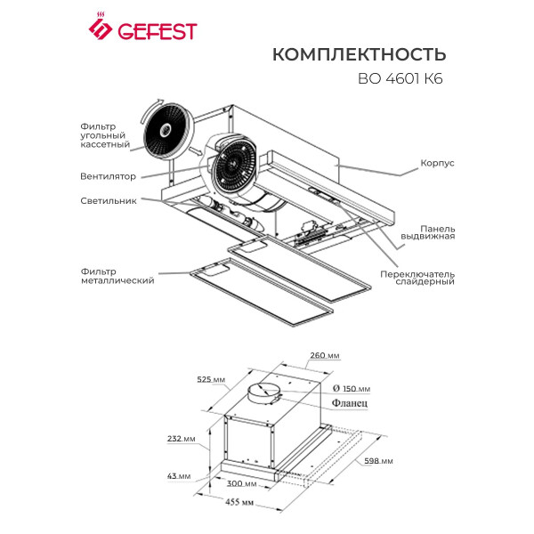 | Диаметр патрубка воздуховода | 150