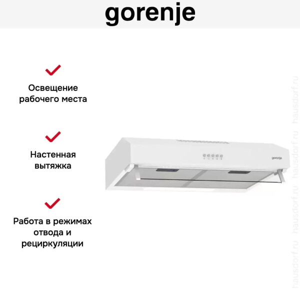 Встраиваемая вытяжка Gorenje WHU 529EW/M - стильная и тонкая, всего 125 мм толщиной, станет отличным помощником на кухне. Она способна работать как в режиме отвода, так и рециркулировать воздух внутри помещения, пропуская его через жировой фильтр, который легко отмыть как руками, так и в посудомоечной машине. Когда вытяжка выключена, антивозвратный клапан препятствует проникновению газов из домовой шахты вентиляции. Gorenje WHU 529EW/M имеет встроенную светодиодную подсветку мощностью в 4 Вт.
