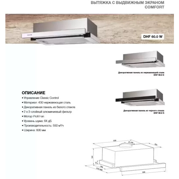 Вытяжка Graude DHF 60.0 W имеет стандартную ширину 60 см. Фронт из белого стекла органично дополнит интерьер кухни. Данная модель оснащена надежным мотором Profi Fan.