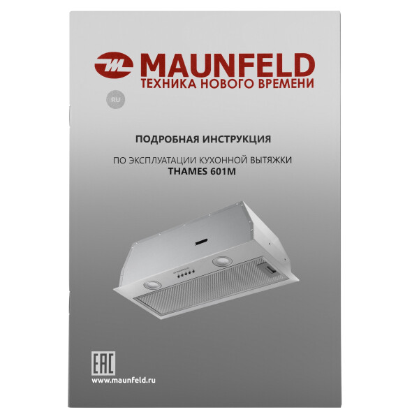 Вытяжка предназначена для встраивания в кухонный шкаф.
