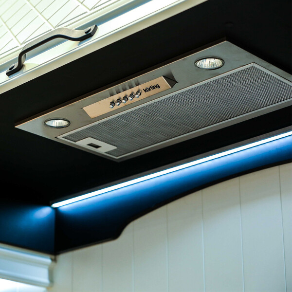 Встраиваемая в подвесной шкаф вытяжка Korting KHI 6530 X отличается малошумностью, всего 50 Дб, при высокой производительности 450 м3/ч. Простое кнопочное управление и мощные светодиодные лампы делают вытяжку практичной и удобной в использовании. Алюминиевый жировой фильтр можно мыть вручную или в посудомоечной машине. Угольный фильтр KIT0271 (2 штуки) в комплекте.