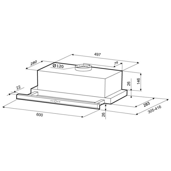 Конструкция KRONAsteel KAMILLA Slim 600 включает выдвижную панель, за счет которой можно увеличить рабочую площадь. Максимальная производительность оборудования достигается функционированием двух моторов и установкой третьего скоростного режима. За один час вытяжка способна очистить до 550 куб.м воздушного пространства. Уровень шума, издаваемый устройством, не превышает 46 дБ.