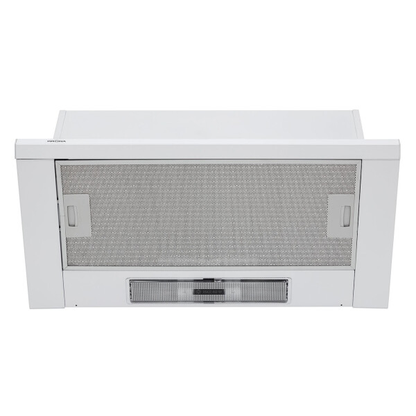Вытяжка предназначена для монтажа в шкаф. Она остаётся практически незаметной для окружающих, поскольку высота её видимой части равняется всего 17 мм. Выдвижной козырёк позволяет одним движением руки включать и выключать двигатели, а также изменять ширину зоны всасывания.