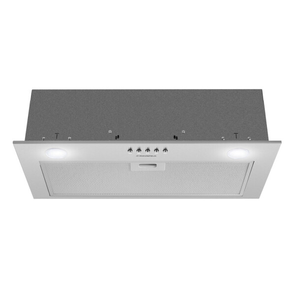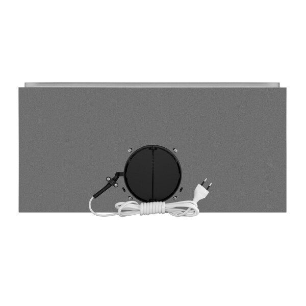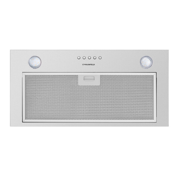 Корпус выполнен из нержавеющей стали. На фронтальной панели белого цвета установлен многослойный жироулавливающий алюминиевый фильтр. Он легко вынимается из вытяжки и полностью разбирается, что значительно упрощает его очистку.