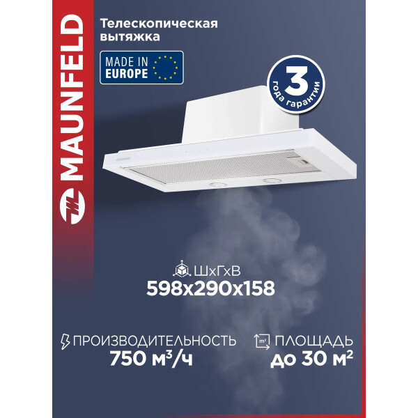 Полная потребляемая мощность составляет 190 Вт, вытяжка оснащена мотором с максимальной производительностью 750 м3/ч, что позволяет эффективно очищать воздух.