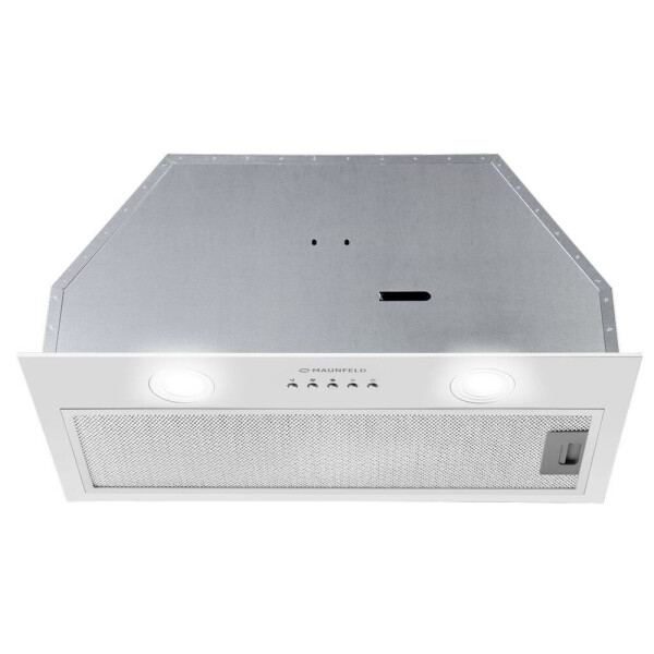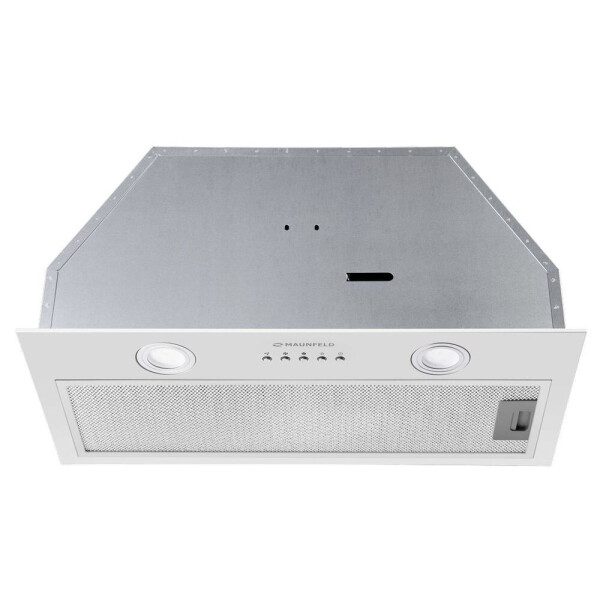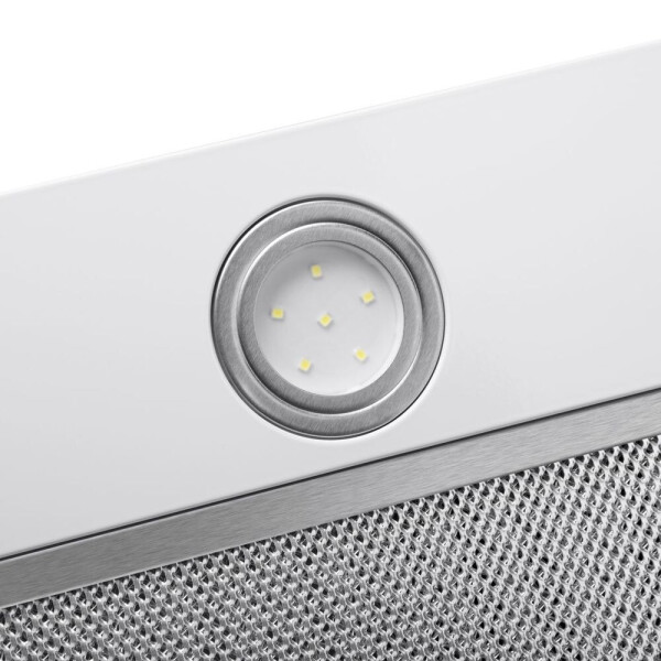 Фронтальная панель выполнена из нержавеющей стали с высококачественным покрытием белого цвета. Многослойный жироулавливающий алюминиевый фильтр, расположенный по центру панели, легко вынимается из вытяжки и полностью разбирается, что сильно упрощает его чистку.