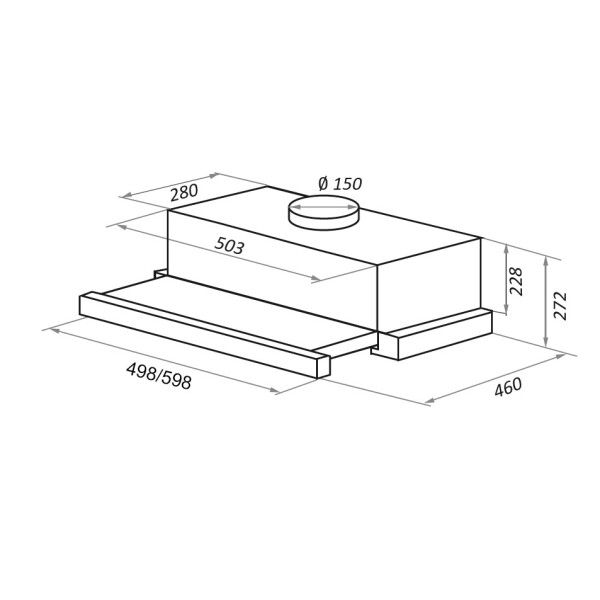 Максимальная производительность 1000 м3/час, 3 скорости, сенсорное управление, алюминиевый фильтр, освещение светодиодное LED 2*1 Вт, уровень шума 56Дб, полная потребляемая мощность 162Вт, диаметр воздуховода D=150мм, вытяжка/воздухоочиститель, встраиваемая модель.
