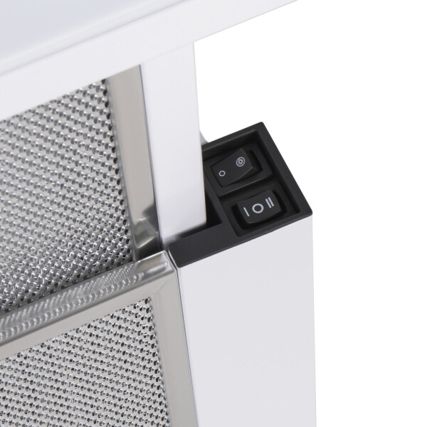 Вытяжка оснащена колыбельным управлением 2-мя скоростями.
