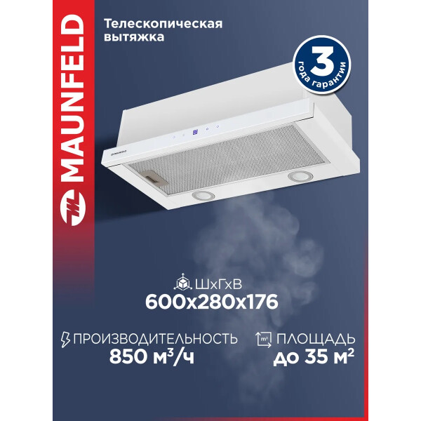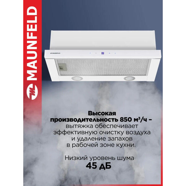 Мотор мощностью 100 Вт работает с максимальной производительностью 850 м3/ч. Использование лучших комплектующих и высокое качество сборки обеспечивает низкий уровень шума работы вытяжки не более 56 дБ.