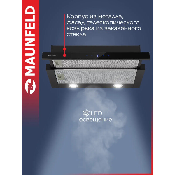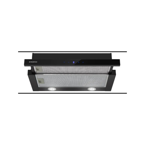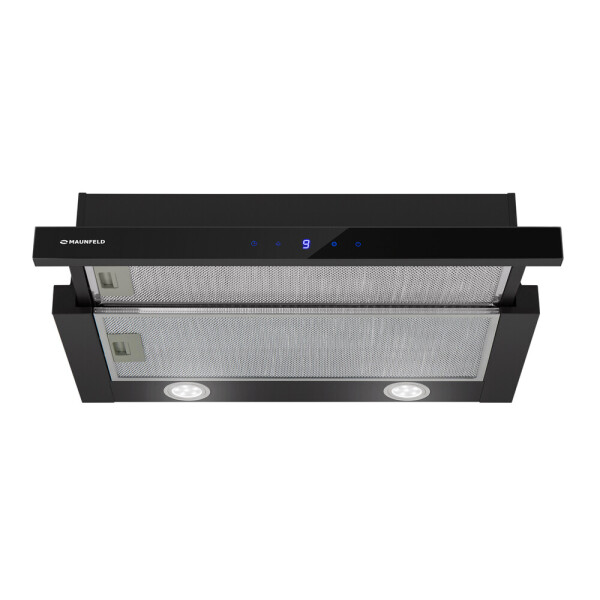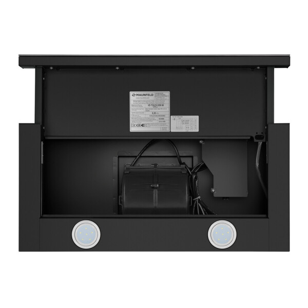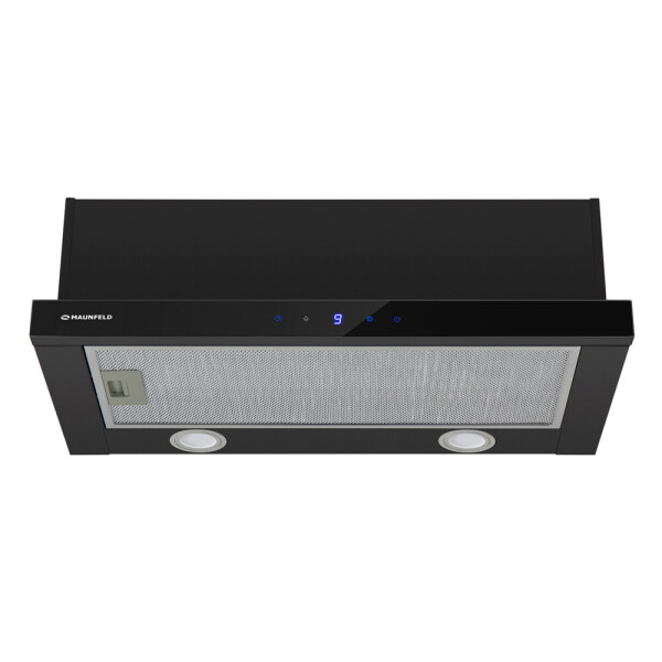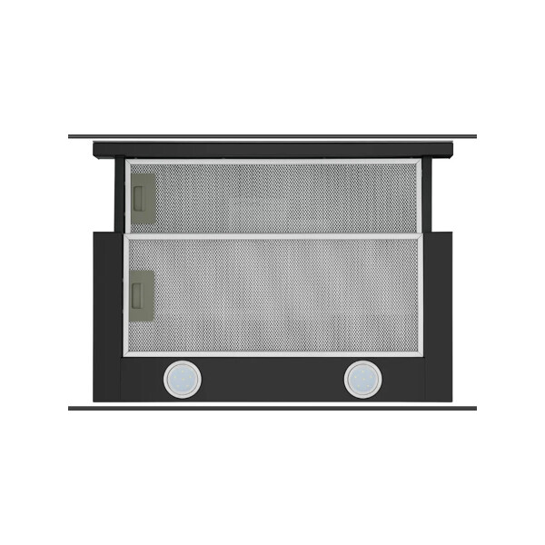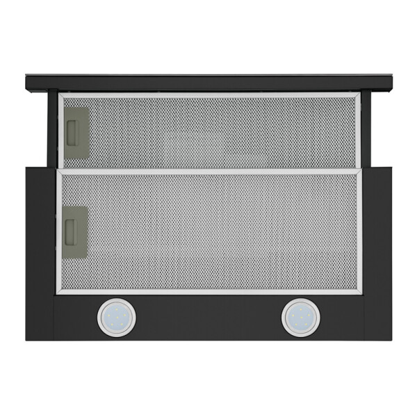Корпус сделан из нержавеющей стали с высококачественным покрытием черного цвета. Фасадная панель из высокопрочного закаленного стекла выполнена в цвет корпуса. Два многослойных жироулавливающих фильтра из алюминия легко вынимаются из вытяжки и полностью разбираются, что сильно упрощает их чистку.