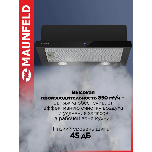 Мотор мощностью 100 Вт работает с максимальной производительностью 850 м3/ч. Использование лучших комплектующих и высокое качество сборки обеспечивает низкий уровень шума работы вытяжки не более 56 дБ.