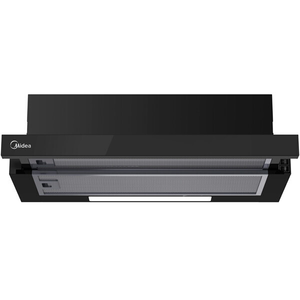 Вытяжка Midea MH60P303GB встраивается в кухонный шкафчик, оставаясь практически незаметной для окружающих. Такая конструкция делает её совместимой с самыми разными интерьерами. Телескопический экран позволяет включать её и регулировать ширину зоны всасывания одним движением руки. Сдвоенная турбина обеспечивает эффективную очистку воздуха при минимальном уровне шума.