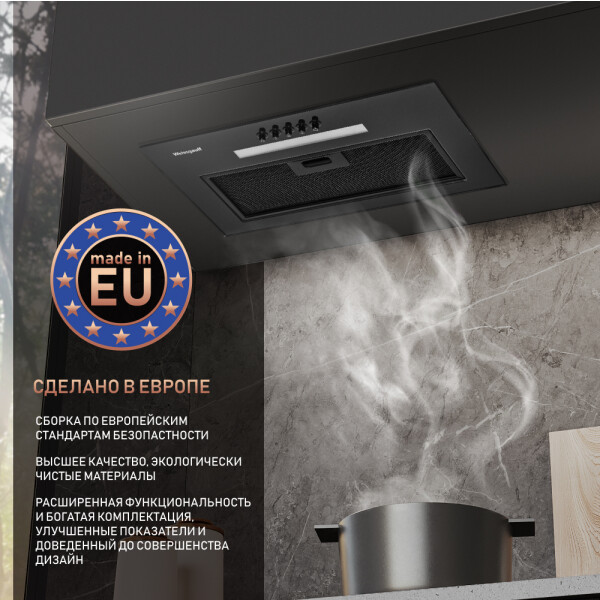 Дизайн, выполненный в черном цвете станет финальным штрихом в совершенстве великолепного облика этой модели. Каждый раз, заходя на кухню, вы будете чувствовать, что эта вытяжка - не просто функциональное устройство, но и настоящее украшение вашей кухни!
